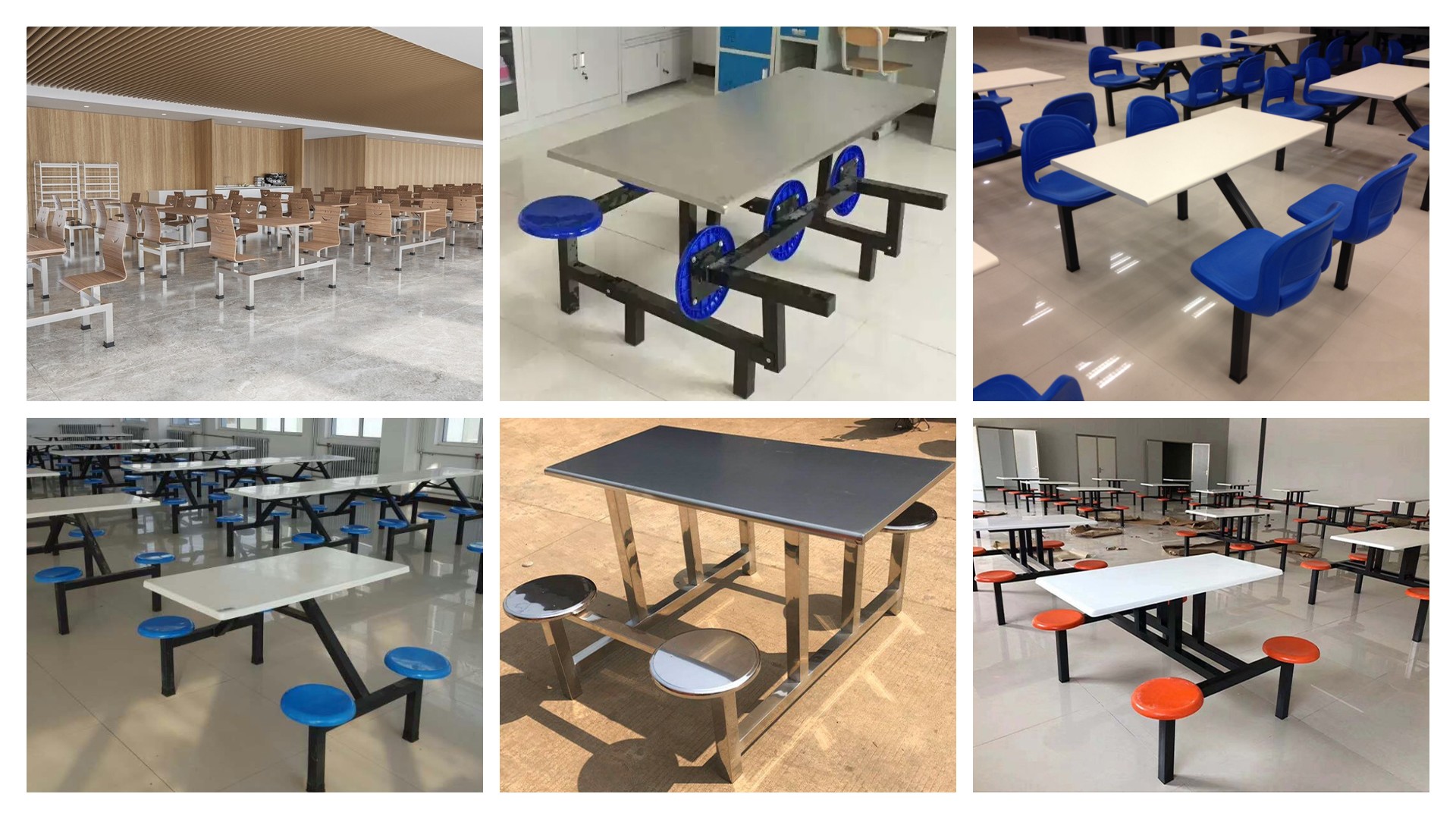 食堂餐桌用材比較廣泛,多以桌面與座椅相連接的款式為主。高度以720mm-760mm為標(biāo)準(zhǔn),餐桌椅是人類日常生活和社會活動中使用的具有坐臥、憑倚、餐食等功能的器具。通常由若干個零、部件按一定接合方式裝配而成。給大家用餐時使用的桌椅,鋼木結(jié)構(gòu)居多,結(jié)構(gòu)簡單,顏色簡潔。